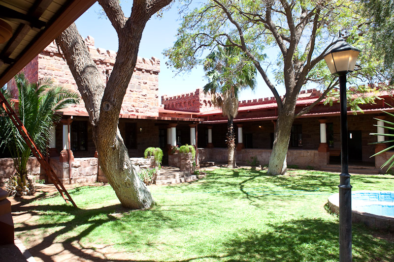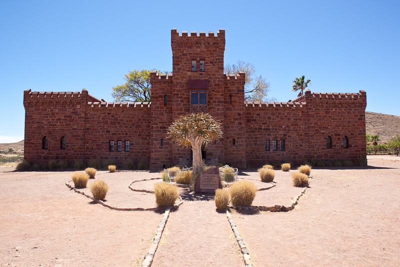 Vor den roten Dünen von Wolwedans wollte ich mir eine ganz besondere Kuriosität anscheuen, die ich in dieser Umgebung niemals erwartet hätte. Ein mehr oder weniger originalgetreues mittelalterliches Schloss mitten in der Wüste! :EEK: Irgendwie hatte ich das gar nicht glauben wollen als ich im Reiseführere darüber gelesen hatte. ABer tatsächlich, das Ding gab es wirklich.
