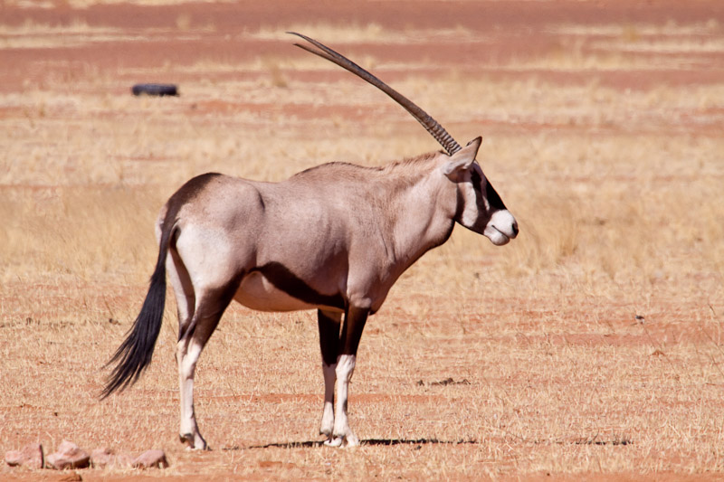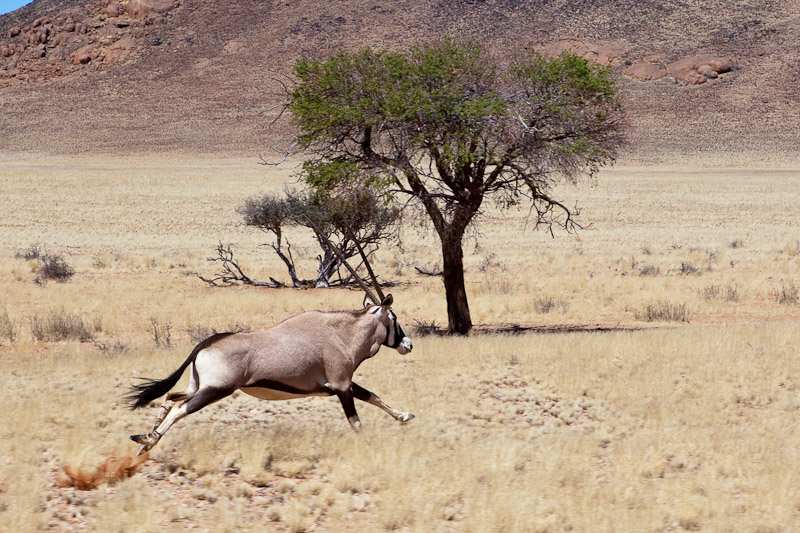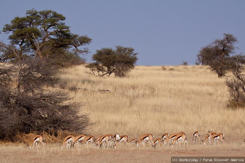 Untwegs sah man immer wieder Oryx und Springböcke, die jetzt fast nur noch im Schatten der Bäume anzutreffen waren.
