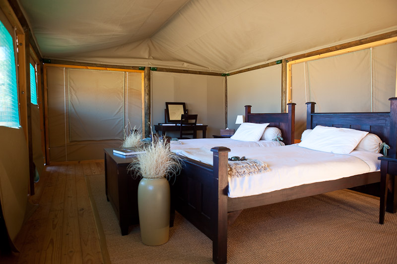 Mir hat es hier noch besser gefallen als in der (teureren) Lodge. Die Lage war noch schöner und es war alles etwas kleiner und intimer. Es gibt nur 6 Zelte, so dass man abends mit max. 12 Leuten an einem gemiensamen Tisch isst. So hat man die Chance, mit jedem ins Gespräch zu kommen.
