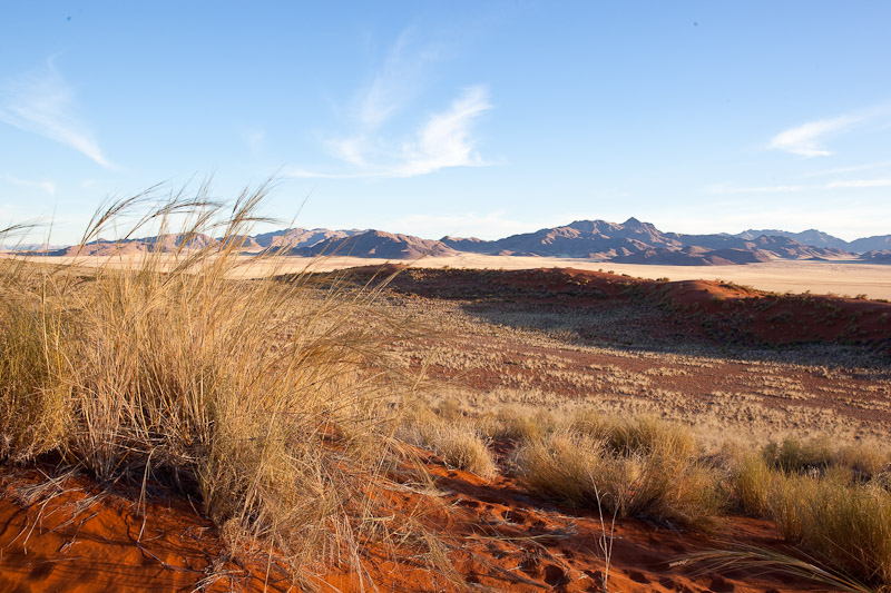 Anschließend braucht ich eine hlabe Stunde, um aus den diversen Fächern und Schränken des Campers die Sachen rauszusuchen, die ich die nächsten Tage brauchen würde. Das eigene Auto böleibt nämlich dort stehen und man wird mit dem Land Rover zur Dune Lodge gefahren, wo ich die erste Nacht verbringen würde (eigentlich wollte ich in das etwas günstigere Dune Camp aber dort waren keine drei Nächte mehr zu bekommen, so dass ich zwischendurch umziehen musste). Schade, hätte bestimmt Spaß gemacht, sich selbst durch den Sand dorthin zu wühlen (ob der Hilux das geschafft hätte?).