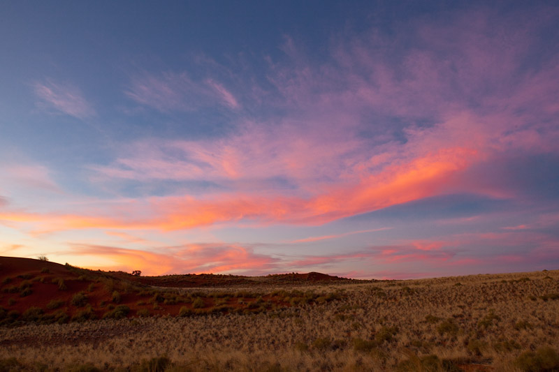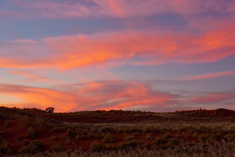 Innerlich und äußerlich erfrischt (ich hatte noch ein kaltes Bierchen aus dem Kühlschrank meines Campers mitgenommen) war ich pünktlich zur Abfahrt bereit. Mit insgesamt 5 anderen Gästen (einem englischen Ehepaar, einem Amerikaner und einem französichen "Paar" bestehend aus Vater und Tochter, wurden wir in einem Landrover kräftig durchgeschüttelt bevor wir eine halbe Stunde vor Sonnenuntergang einen wunderschönen Aussichtspunkt erreichten. Dort glühten die Kamera-Auslöser.