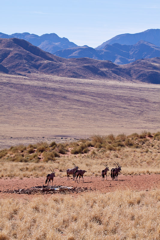 Bald tauchten auch die ersten Oryx am Lodge-eigenen Wasserloch auf.