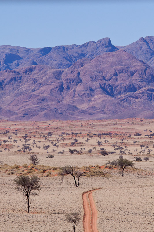 Nach etwa einer weiteren Stunde erreichte ich den Abzweig ins Namib Rand Nature Reserve zur Wolwedans Lodge. Von dort waren es noch 20-30 km über eine schmale Dirtraod bis zur Rezeption. Zumindest die ersten 2 oder 3 km dienten mit einer Menge spitzer Steine wohl eher der Abschreckung zufälliger Besucher. Wenn man gebucht und schon bezalht hatte, blieb einem ja nichts anderes übrig als weiter zu hoppeln.