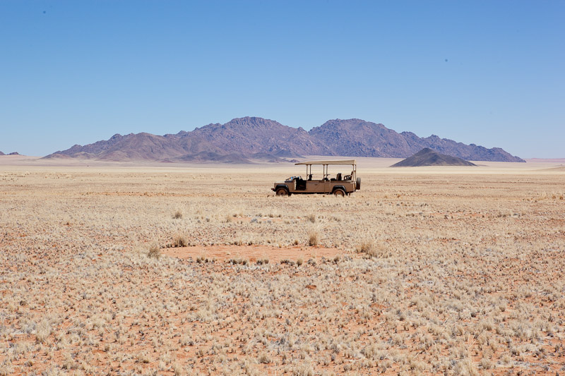 Diese kreisrunden kahlen Stellen wie hier neben unserem Landy sieht man dort überall und sie werden Fairy Circles genannt und niemand weiß genau, wie sie entstanden sind. Neben diversen wissenschaftlichen Theorien (s. Link) gibt es bei den Himba die Vorstellung sie seien von Göttern oder Geistern angelegt worden. Ich persönlich glaube ja mehr an Landeplätze von Aliens ;)