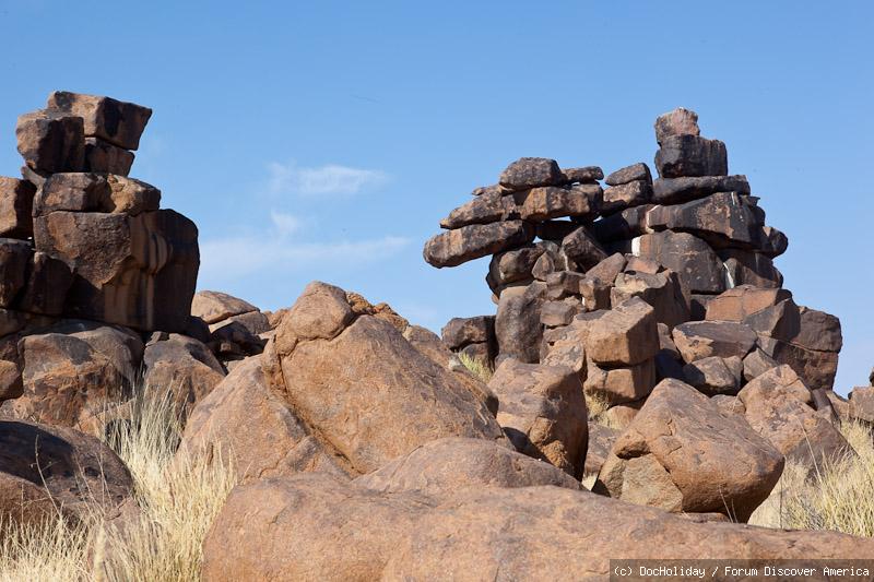 Übernachtet habe ich direkt am Köcherbaumwald. Nach Check-In und Anmeldung zum Abendessen war noch recht viel Zeit bis zum Sonnenuntergang, so dass ich die paar km zum Giants Playground gefahren bin. Sieht wirklich so aus, als hätte ein Riese dort eine Kiste Bauklötze ausgeschüttet (Bauklötze aus Granit).