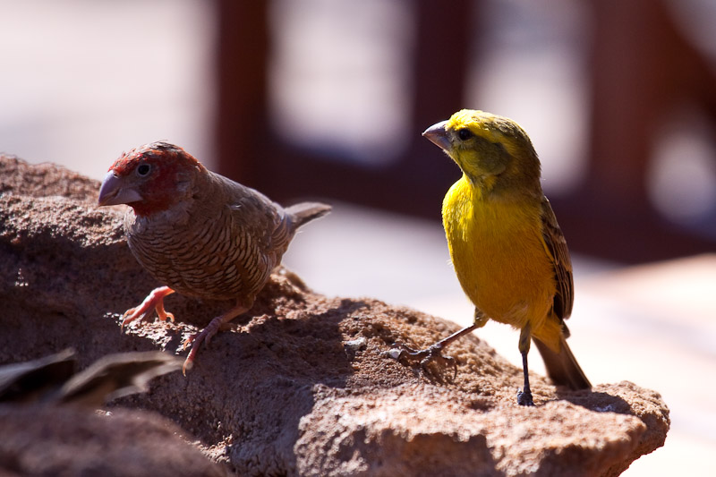 Auf die Art habe ich auch Bilder von grünen und rotköpfigen Webervögeln.