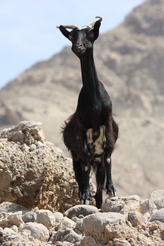 Als wir weiterfahren plärrt plötzlich eine unserer Mitfahrerinnen "There is a goat... in the tree!!". Ich denke erst nur 'Wat is los?', aber tatsächlich... wusste gar nicht, dass Ziegen auch auf Bäumen leben  :lol:. Die omanischen Ziegen sind echt coole Viehcher. 8)