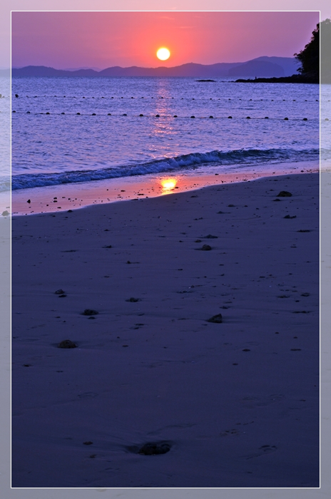 Gebucht hatten wir das Ban Best One Guesthouse – gut und günstig, aber halt nicht direkt am Strand. Um zum Strand zu kommen musste man erst durch den Ort laufen, in 10 Minuten war man jedoch da. Die Strände von Koh Samet sind als Nationalpark deklariert, das heißt man muss Eintritt zahlen. Da wir unsere Work Permits mithatten konnten wir zum Thai-Preis rein, den Preis für Farangs weiß ich leider nicht mehr. Es gibt auch kleine Schleichwege, bei welchen man auch so rein kommt. Das hatten wir den ersten Abend ausprobiert (hem, hem), da es schon recht spät war und sich der Eintritt nicht mehr wirklich gelohnt hätte.