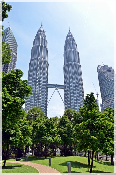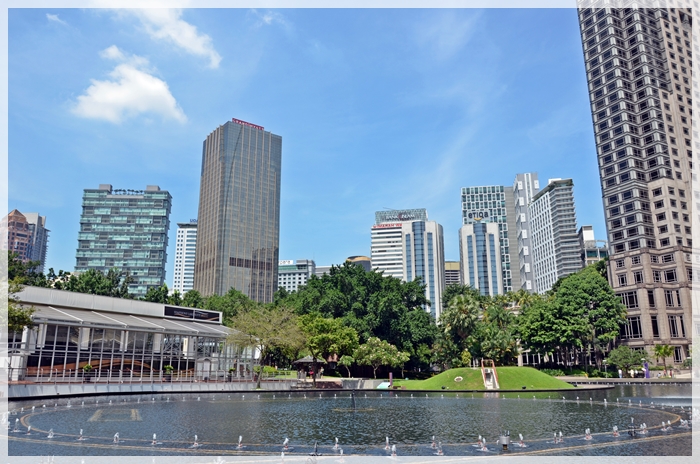 Als nächstes: Ab zum Ticketschalter und Tickets für die nächste freie Sky Bridge und Observation Deck Tour - 3 Stunden später - gekauft. Hm, drei Stunden, was tun? Ab in den Park! Die Türme stehen direkt am Rand des Kuala Lumpur City Center Parks, der viele Möglichkeiten zum Zeitvertreib bietet – zum Beispiel tolle Foto-Ops nach jeder Kurve.