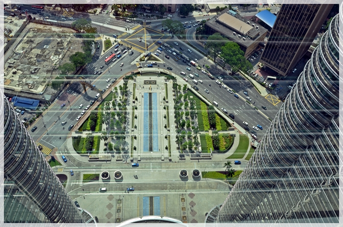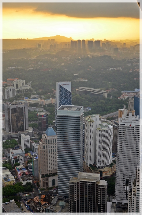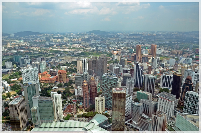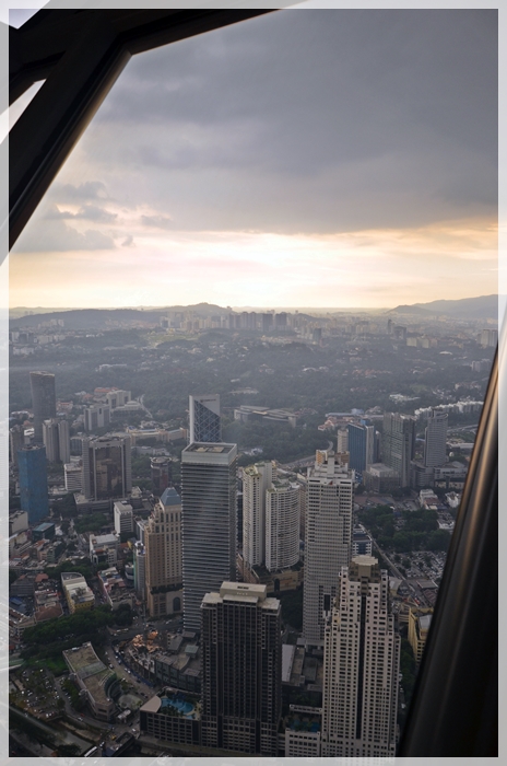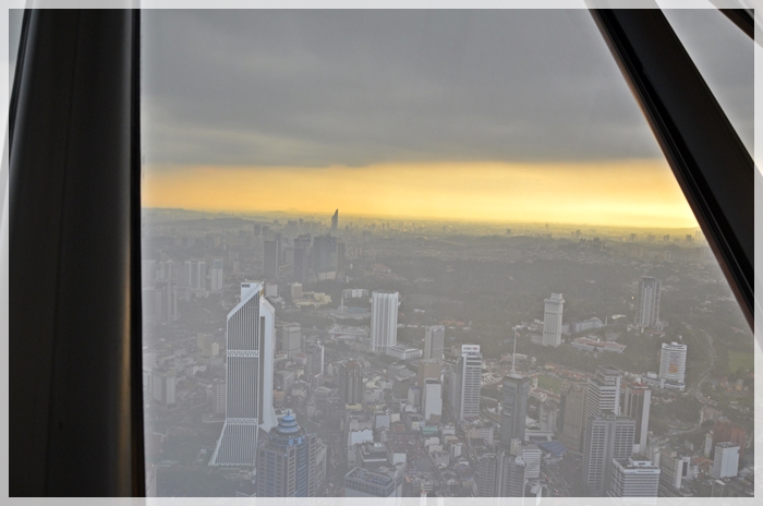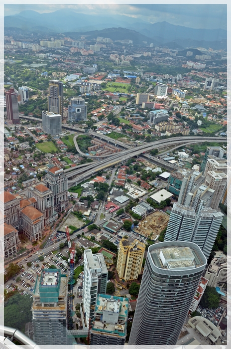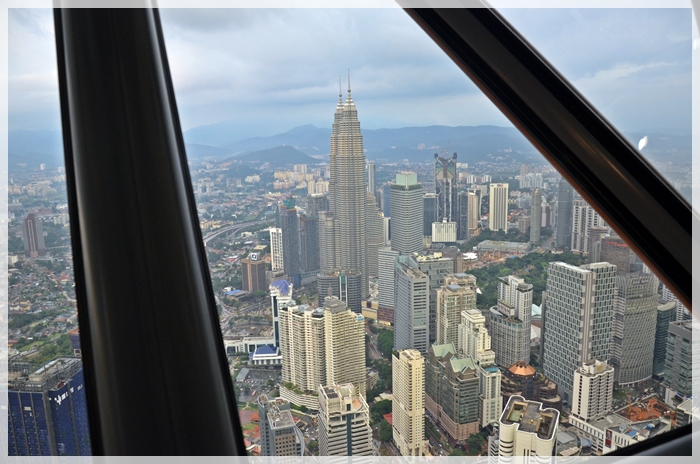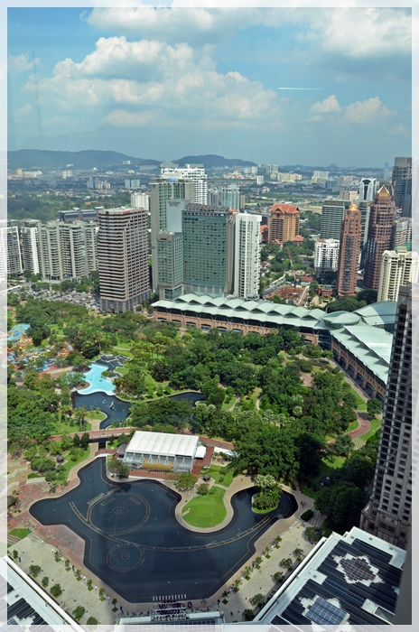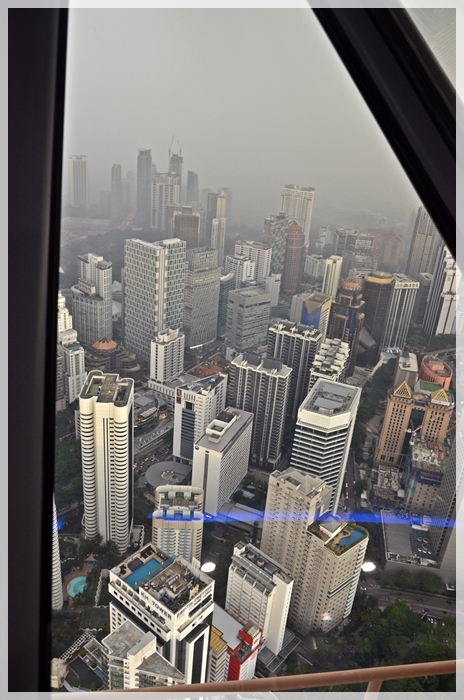 Allzu groß ist er jedoch nicht, also blieb auch noch Zeit für das an die Petronas Towers angrenzende Shopping Center und einem leckeren Mittagessen im Food Court bevor es mit der Tour losging. Als erstes ging es zur Skybridge (41. Etage). Tolle Aussicht aber leider – wie auch vom Observation Deck aus – immer hinter Glas: yay nasty reflections!