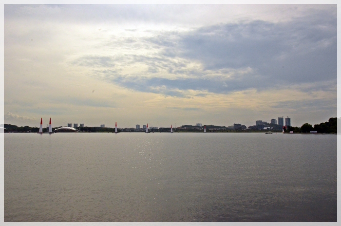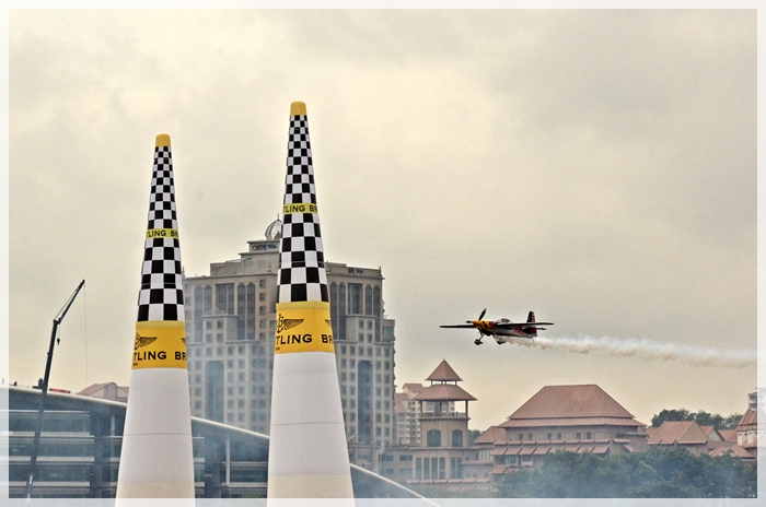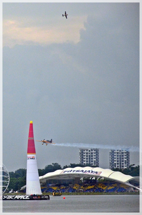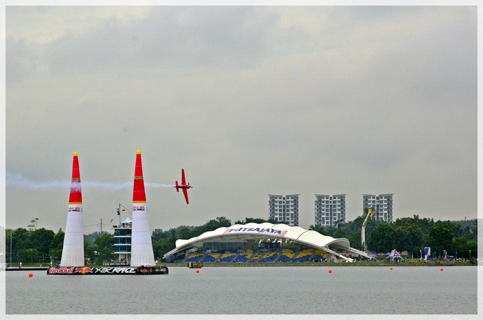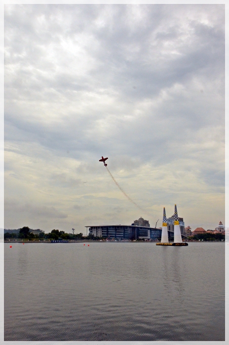 Das Red Bull Air Race fand in Putrajaya statt, einem Vorort von Kuala Lumpur und bequem mit der Airport-Bahn zu erreichen. Von der Bahnstation brachten kostenlose Shuttles die Besucher massenweise zum Putrajaya Lake. Ich war natürlich viel zu früh dran, da ich mir einen guten Platz sichern wollte (die Tribünentickets waren viermal so teuer wie die Stehplätze – nein danke) also hieß es erstmal eine Weile warten.