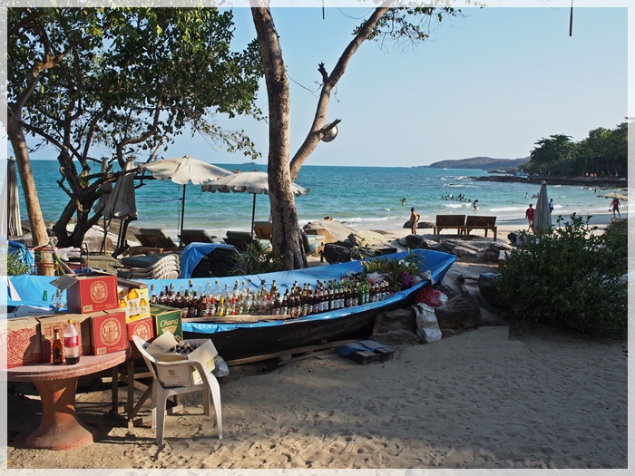 Koh Samet hat wirklich sehr schöne Strände, mit feinem, weißen Sand und recht klarem Wasser in welchem man – egal ob Ebbe oder Flut – auch immer gut schwimmen kann. Der gesamte Strand ist jedoch sehr touristisch ausgebaut (zumindest im Nordosten wo wir waren), Hotel reiht sich an Bar reiht sich an Restaurant reiht sich an Hotel… Aber schön ist es trotzdem und die Strandbars abends sind wirklich zu empfehlen (nicht unbedingt Drink-technisch, aber das ist in Thailand eh immer Glückssache, sondern von der Atmosphäre her). Lediglich der Ort an sich ist nicht sonderlich schick (recht viel Müll, selbst für Thailand Verhältnisse), aber man kann gut essen, ein bisschen Shoppen und sich relativ günstig massieren lassen – was will man mehr?