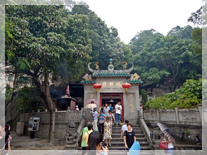 Für den zweiten Tag hatte ich mir die Altstadt rausgepickt, genauer gesagt den UNESCO Weltkulturerbe Pfad. Macau war noch bis 1999 (!) eine portugiesische Kolonie und dem entsprechend gibt es in der Altstadt allerlei mediterrane Einflüsse. Mit dem Bus ging es dann also vom Hotel zum A-Ma Tempel, noch nicht sehr portugiesisch hier, zumindest von unten, hoch laufen wollte ich nicht, dafür ist es mir trotz leichtem Regen zu warm und stickig.