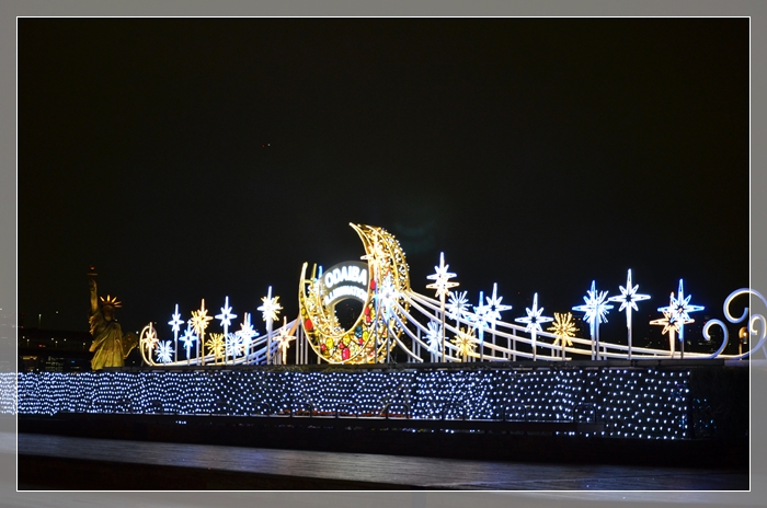 Da es heute draußen irgendwie ungemütlich ist, dachte ich mir, ich fahre nach Odaiba. Da gibt es zwei große Malls – zum Aufwärmen. Und ich wollte eh die eine seltsame Figur dort sehen (ich weiß leider gerade nicht mehr, wie das Gerät hieß), also ab dafür. In Odaiba angekommen musste ich allerdings schnell feststellen, dass mein Research äußerst mangelhaft war. Im Endeffekt gab es so viel zu sehen, dass ich nur einmal kurz bei Old Navy war – netterweise waren gerade langärmlige Sweatshirts im Angebot, sodass ich dann auch bequem draußen rum laufen konnte. :D