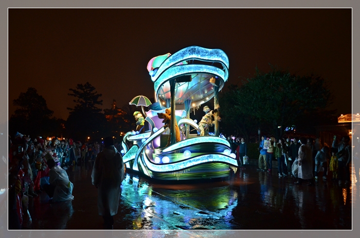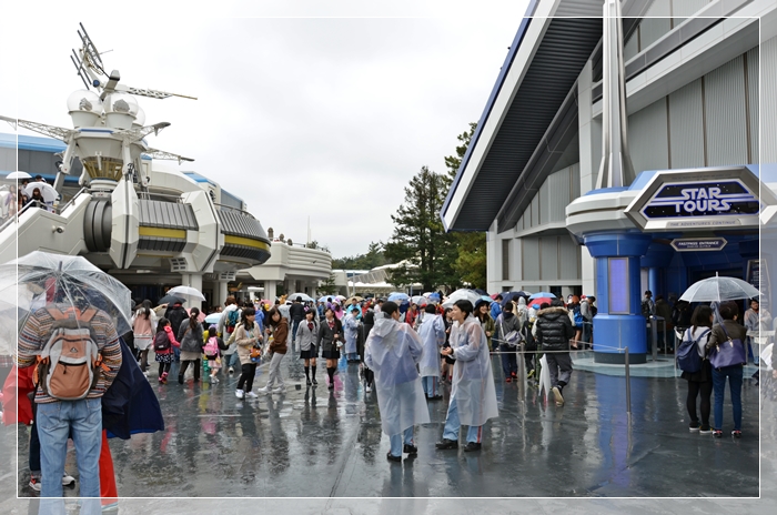 Leider hat es am ersten Tag fast die ganze Zeit geregnet, sodass ich nur selten den Schirm weggepackt und die Kamera raus geholt habe. Zudem musste ich gleich bei der ersten Pfütze feststellen, dass meine Schuhe nicht wasserdicht sind. An beiden Seiten war die Sohle etwas eingerissen und ich stand den ganzen Tag in meiner privaten Pfütze… Nicht gerade angenehm, aber es war trotzdem schön. Nach dem Achterbahn leeren Disneyland Hong Kong gab es hier auch endlich wieder ordentliche Bahnen – auf zum Space Mountain!
