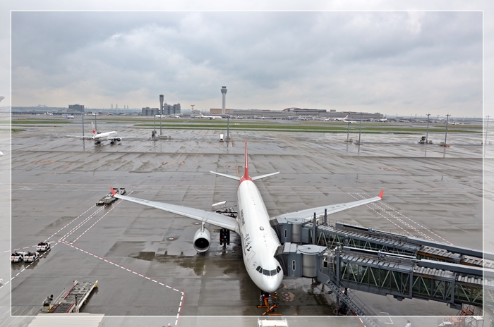 Ja, so viel also zu Tokyo - ganz schön awesome! Hier würde ich glatt noch einmal hin kommen. Auch wenn zum Abschied das Wetter wieder nicht so recht mitspielen wollte. Eigentlich wollte ich mir, bevor mein Flug ging, noch etwas anschauen, aber es war wieder Land unter angesagt – das nenne ich mal echtes Aprilwetter! – also habe ich mir viel Zeit beim Auschecken gelassen und bin dann gleich zum Flughafen gefahren. Als Flugzeug und Flughafen Fan habe ich ja auch kein Problem damit länger auf Flughäfen rum zu sitzen. :D