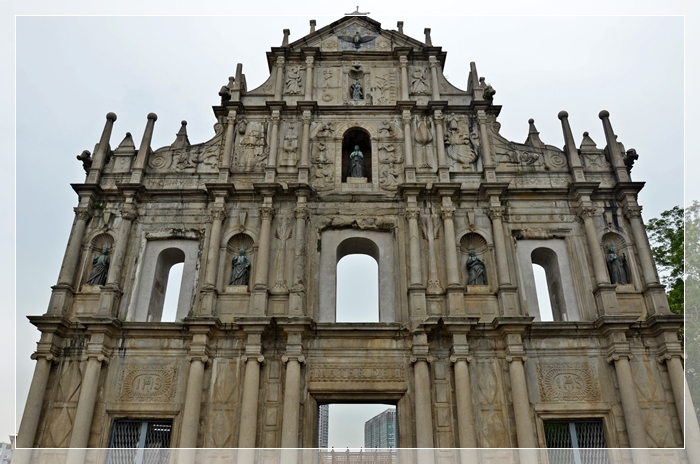 Ganz in der Nähe des Senado Squares ist die Ruine der St. Pauls Kirche. Davon ist nur noch eine Außenwand übrig geblieben.