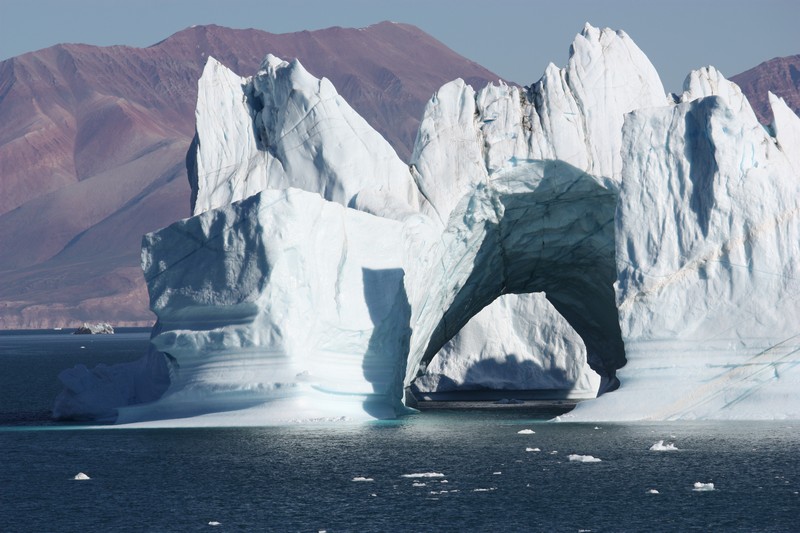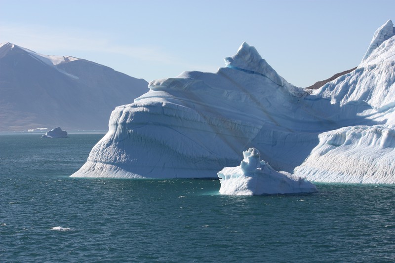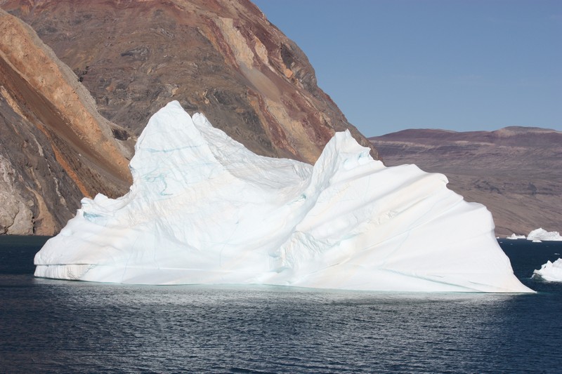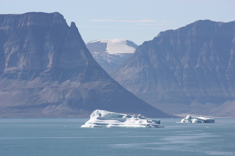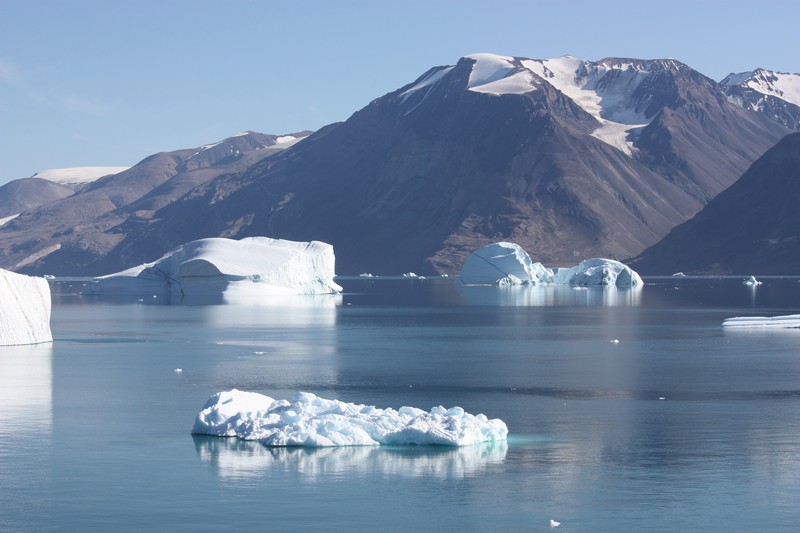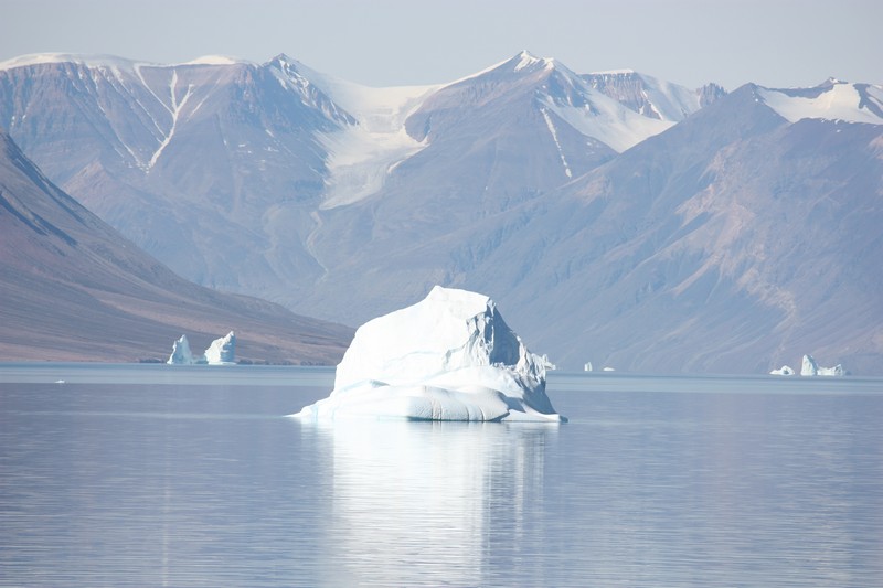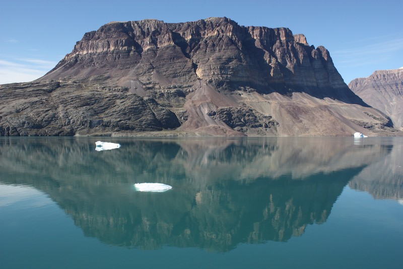 Ittoqqortoormiit / GrönlandHeute steht unsere erste und aufgrund des Packeises leider auch einzige Anlandung in Grönland auf dem Programm. Immer noch haben wir das tollste Wetter. Neun Monate im Jahr bleibt das Meer in dieser Region zugefroren, aber heute sind es für grönlandische Verhältnisse hochsommerliche 12°C. Wie sich das gehört für ein Schiff haben wir die Flagge des Gastlandes gehisst. Mir gefällt die grönländische Flagge total gut. Sie stellt eine über dem Meer untergehende Sonne mit einer Eisscholle davor dar.