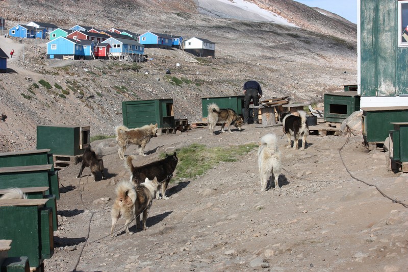 Im ganzen Ort verteilt liegen überall angekettete Schlittenhunde herum, allerdings keine Huskys, wie man vielleicht erwarten könnte, sondern ausschließlich Grönlandhunde. Ittoqqortoormiit befindet sich im so genannten Hundeäquator. Der Hundeäquator ist eine überlieferte Grenze der Inuit und teilt Grönland was die Hundehaltung angeht in zwei Hälften. In der einen Hälfte ist ausschließlich die Haltung von isoliert zu anderen Hunderassen lebenden Grönlandhunden erlaubt. In der anderen Hälfte dagegen dürfen ausschließlich Haushunde gehalten werden, wobei kein Hund die Grenze überschreiten darf.