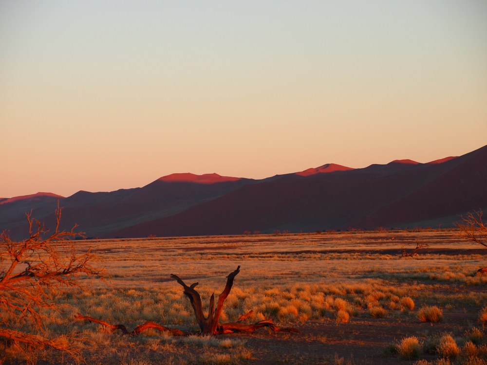 22.08 Desert Extravaganca TourPünktlich um 7 Uhr waren wir beim Frühstück. Hier waren fast mehr Leute im Service als Gäste, obwohl wir das Meiste erst selbst holen mussten. Wir hatten es etwas eilig, da uns Douglas von Living Desert Adventures, Chris hatte heute frei, bereits um 7 Uhr 45 zu einer Tages-Tour abholte. Bevor er los fuhr, fragte er noch, ob alle schön warm angezogen sind. Gut, dass ich dann noch sicherheitshalber eine Jacke holen ging.