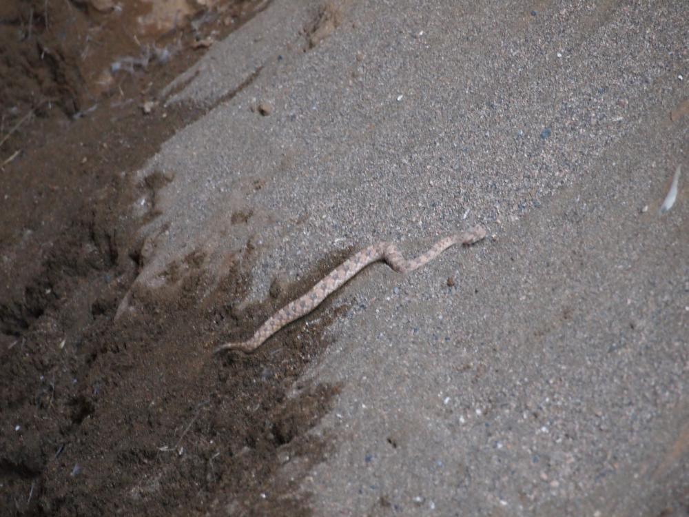 Dann begann er weitere kleine Lebewesen in den Dünen zu suchen. Er erklärte uns auch, nach welchen Spuren wir Ausschau halten sollten. Er stöberte eine Eidechse, die dann mit unglaublicher Geschwindigkeit über den Sand flitzte, auf.