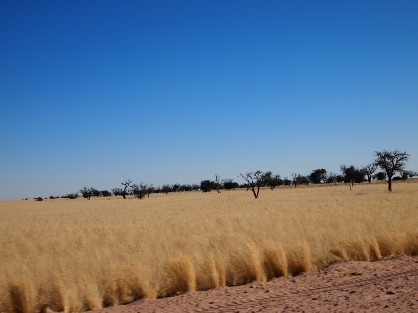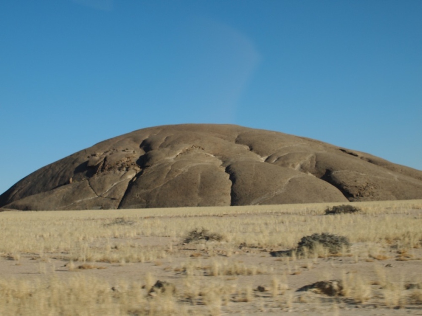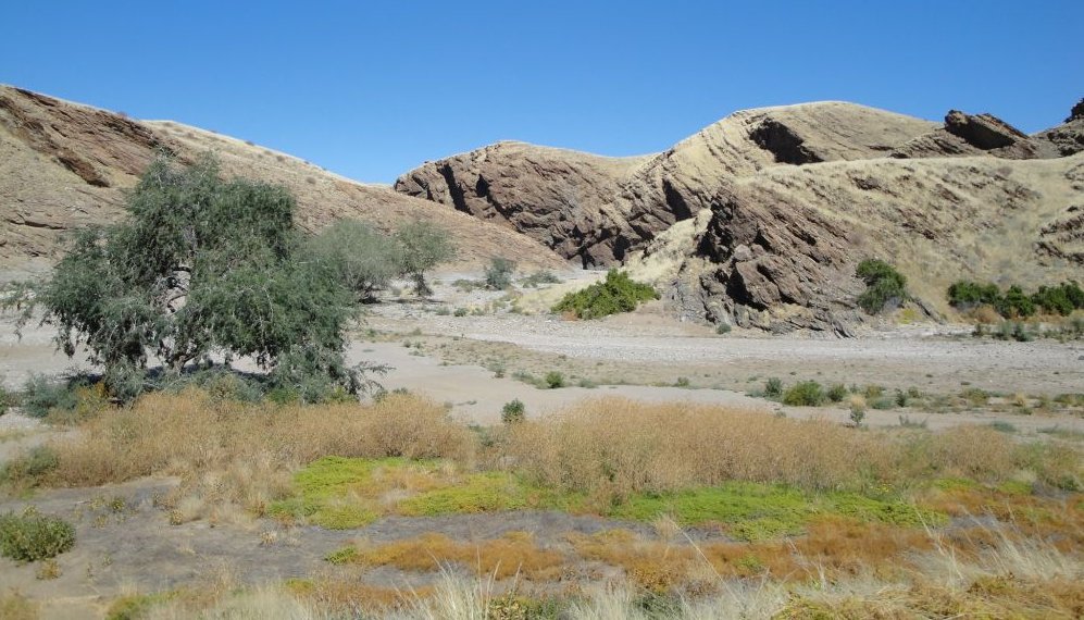 Eine, ich habe den Namen leider vergessen, schon seit 80 Jahren nicht mehr. Der Grund dafür liegt in den ergiebigen Niederschlägen im letzten namibischen Sommer. Der Swakop führte zu dieser Zeit extrem viel Wasser. Jetzt war er trocken, nur einige Tümpel waren noch zu sehen. Wir fuhren weiter am Ufer des Swakop entlang. Plötzlich blieb er stehen. Er zeichnete einen Halbkreis, hier sollten wir stehen bleiben. Er begann zu graben.