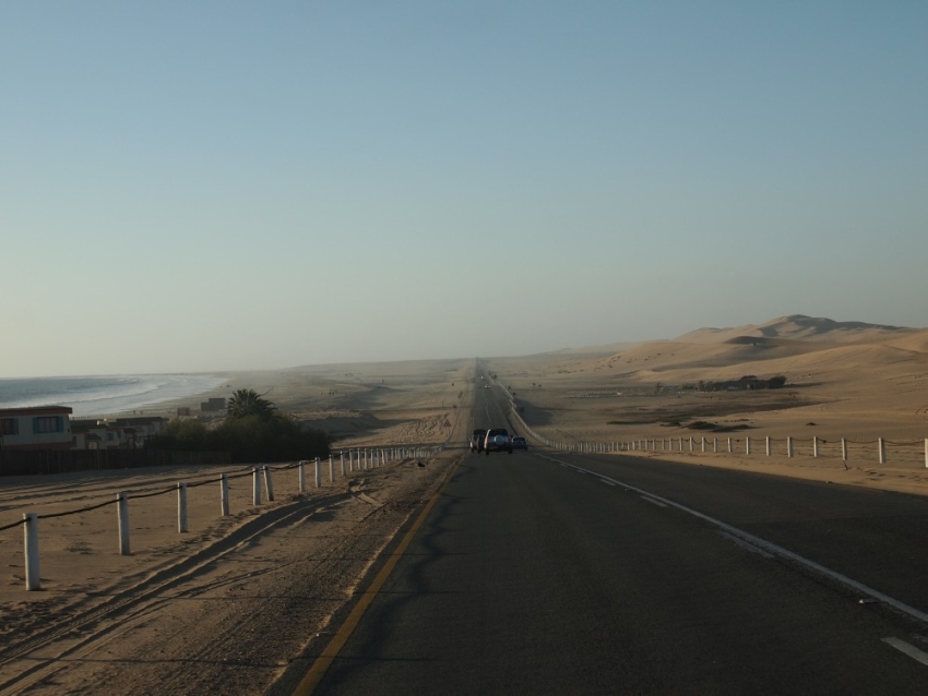 Es begann nun immer stärker zu regnen. Doug konnte sich gar nicht genug wundern über das Wetter. Regen zu dieser Zeit darf es nicht geben und hat es auch noch nie gegeben. Nebel ja, Regen nein. Nur Nebel gibt es zur Zeit auch selten. In einer Kolonne von Rössing-Minen-Busen fuhren wir bei immer stärker werdendem Regen zurück nach Swakopmund. In der Stadt brachte er uns noch zu einer Bank mit Bankomat der auch Maestro akzeptiert. Nur bares ist wahres. Nach diesem ereignisreichen Tag gingen wir, bei leise rauschendem Regen, bald müde zu Bett.