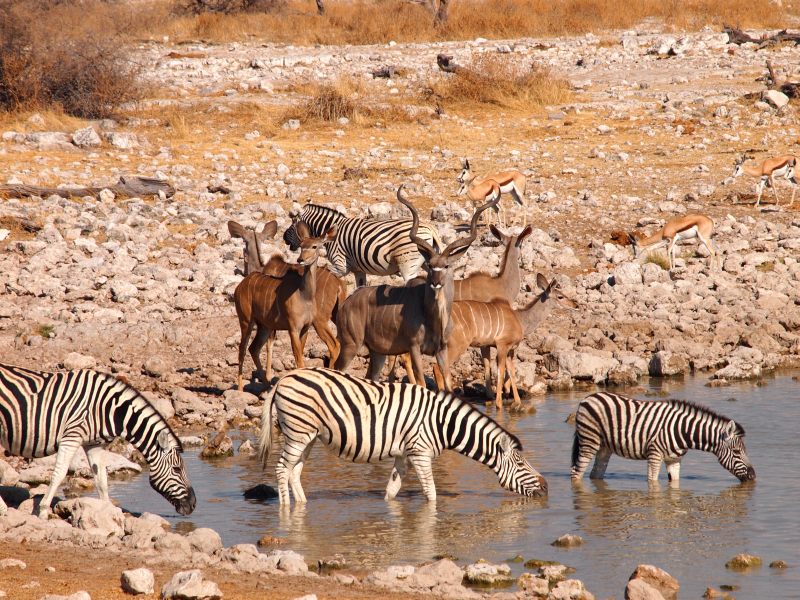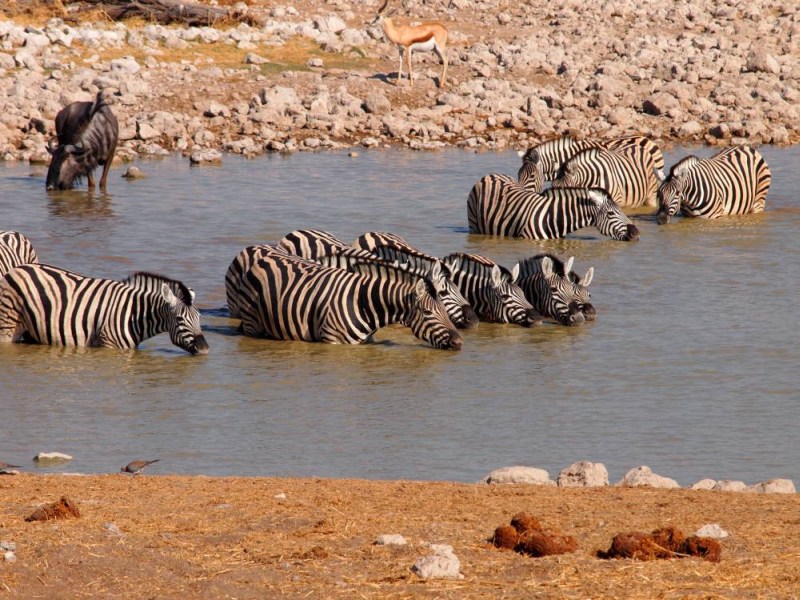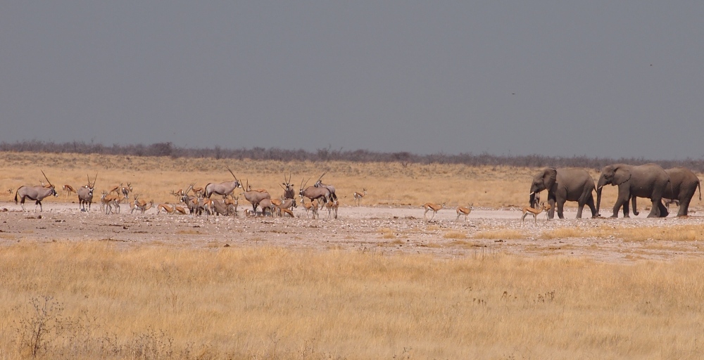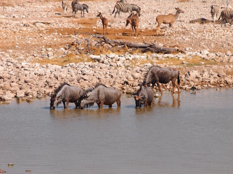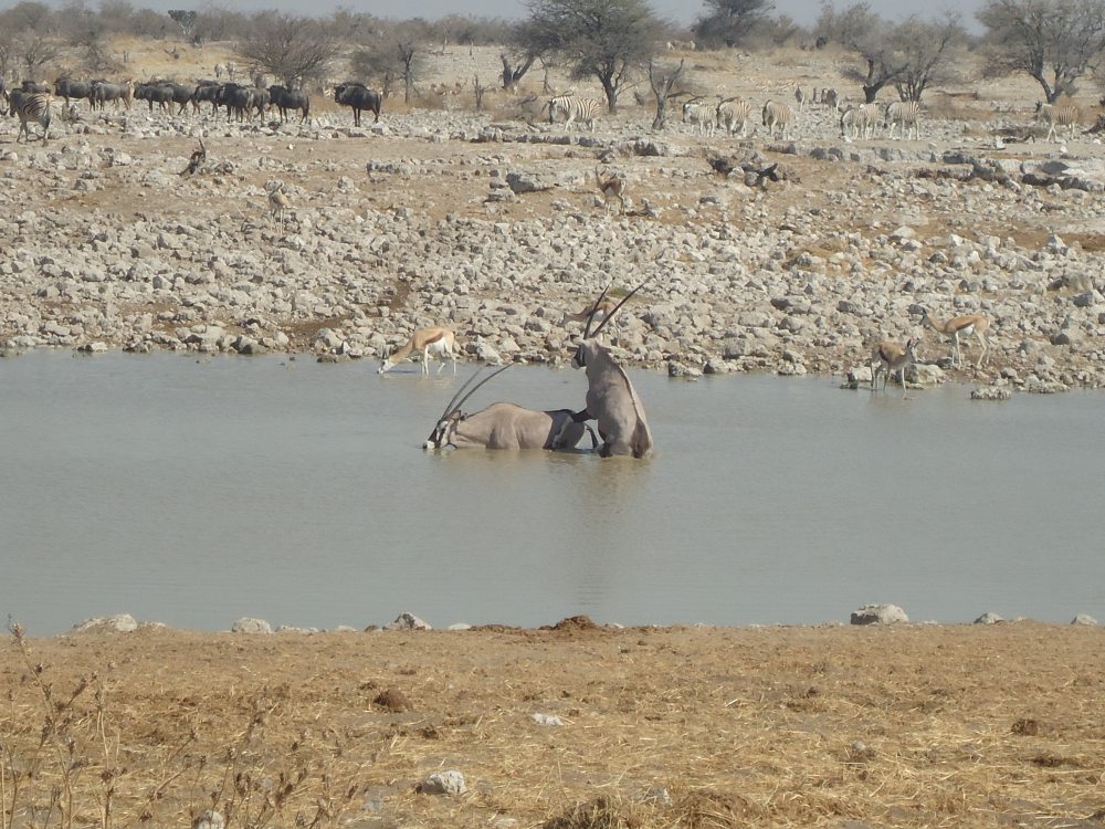 Bis wir zum Etosha gekommen sind haben wir nicht sonderlich viele Tiere gesehen. Schon beim ersten Wasserloch, dem Ombika, gleich nach dem Parkeingang, ging es richtig los.