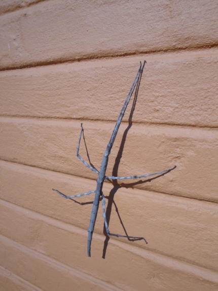 Die lustige Runde von gestern Abend setzten wir beim Frühstück fort. Vor lauter Plappern hätten wir fast die Zeit übersehen. Bei der Abfahrt entdeckte Florian noch eine große Gespenstschrecke an der Hauswand.