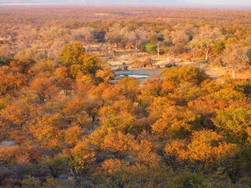 In der Morgensonne begannen die Blätter der Mopanebäume zu leuchten.