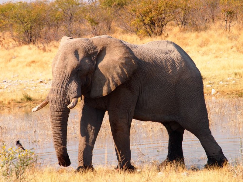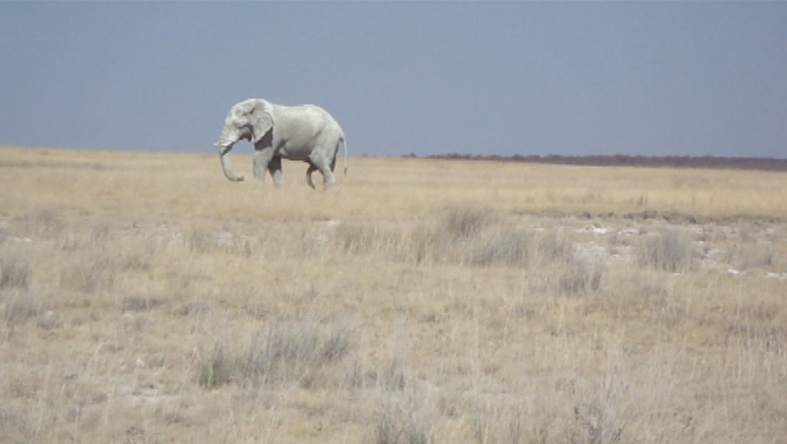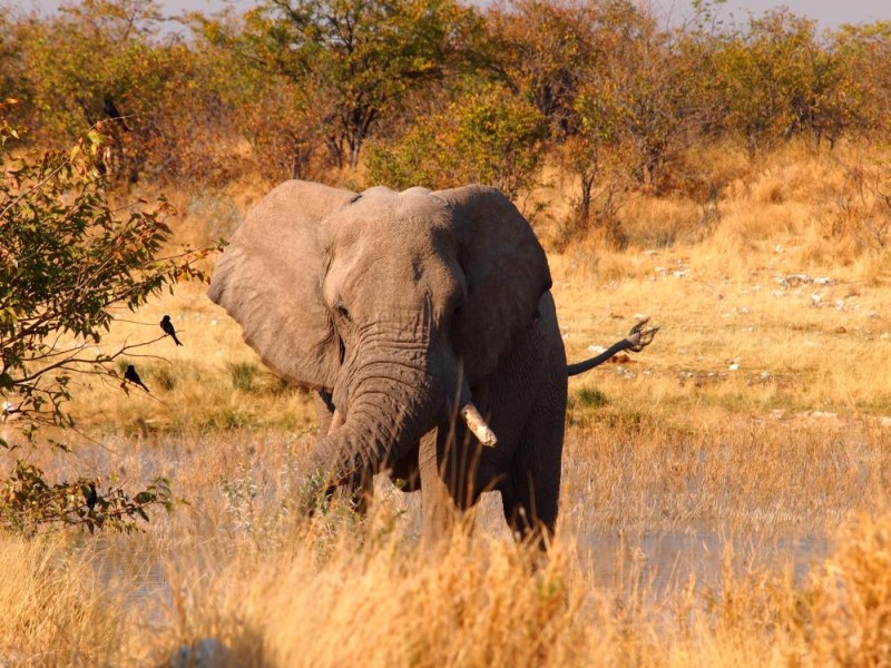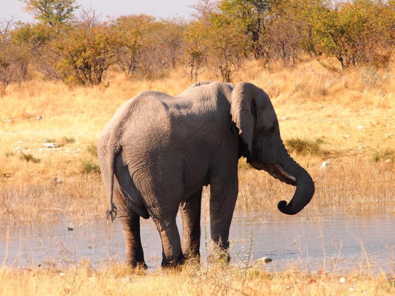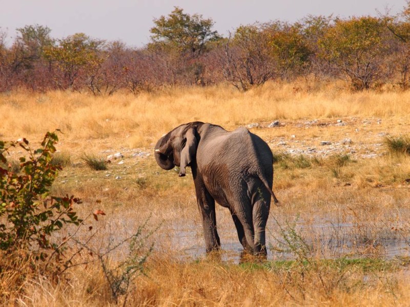 Als wir das Wasserloch Aus erreichten, war, zu unserer großen Freude, tatsächlich ein Elefant zu sehen.