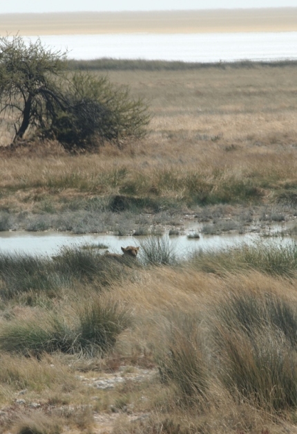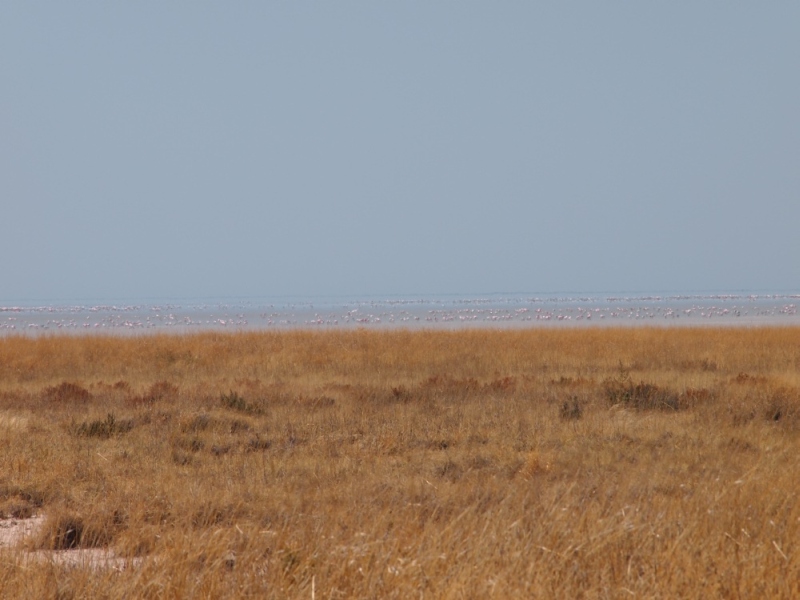 Nach dieser Feuertaufe fuhren wir Richtung Salzpfanne zum Wasserloch Kapupuhedi. Hier waren zwar keine Tiere aber es gab einen schönen Blick auf die Pfanne.