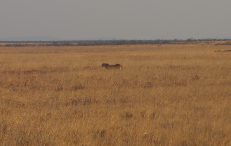 Gut einen Kilometer weiter eine PKW-Ansammlung. Wir schauten auch angestrengt und konnten einen Löwen entdecken, der im Gras stand.