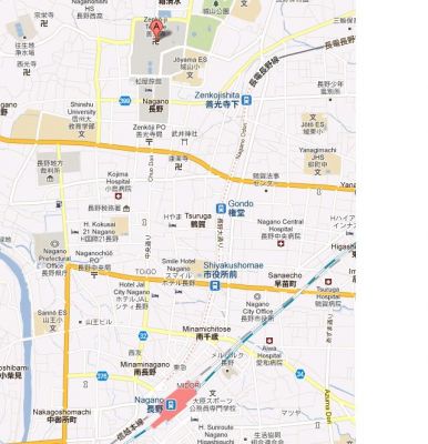 Im Bahnhof in Nagano finden wir zu meiner großen Erleichterung 2 große Gepäckschließfächer. In Reiseführern hatte ich gelesen dass die überall Mangelware sind, da Japaner nie lange verreisen und daher immer nur kleines Gepäck dabei haben, ich hatte extra den kleineren meiner beiden Koffer mitgenommen und eine kleine Zweittasche für 2 Paar Schuhe. Wir verstauen unsere Koffer und fahren mit dem Bus zum Zenko-ji Tempel in der Innenstadt von Nagano. Hier erweist es sich zum ersten Mal als schwierig den richtigen Bus zu finden, aber mein Freund findet ihn schließlich, die Beschilderung der Busse war japanisch, die Nummer jedoch in arabischen Ziffern zum Glück lesbar!