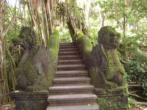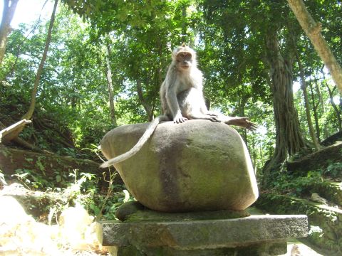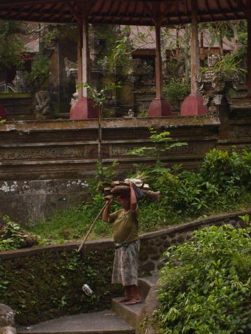 Am Nachmittag erreichten wir Ubud. Schon mehrere Kilometer vor der Stadt dominierten Läden und Galerien das Straßenbild, die alles Mögliche an Kunsthandwerk anboten. Ich checkte im wunderschönen Komaneka at Monkey Forest ein: zentral, bequem, intim, persönlich, mit jeder nur denkbaren Annehmlichkeit für die Gäste und absolut zu empfehlen, wenn man sich etwas gönnen will. Das angebotene Upgrade auf das nagelneue Komaneka at Bisma (stylish, supermodern, großzügig, toller Pool, atemberaubender Ausblick auf eine wild bewachsene Schlucht, trotzdem landestypisch) lehnte ich vor allem deshalb ab, weil ich die zentrale Lage des Komaneka at Monkey Forest absolut unübertroffen fand und mein gebuchter Suite room im gebuchten Hotel nur unwesentlich "schlechter" war, sofern man in dieser Kategorie davon sprechen konnte.