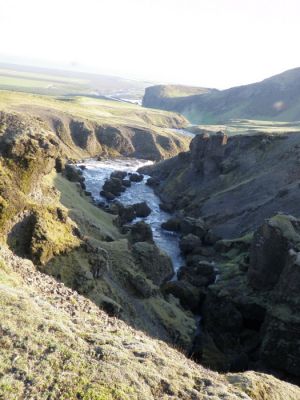 Es geht ein Stück an der Kante entlang und dann auf der anderen Seite von Kirkjubaejarklaustur wieder runter.