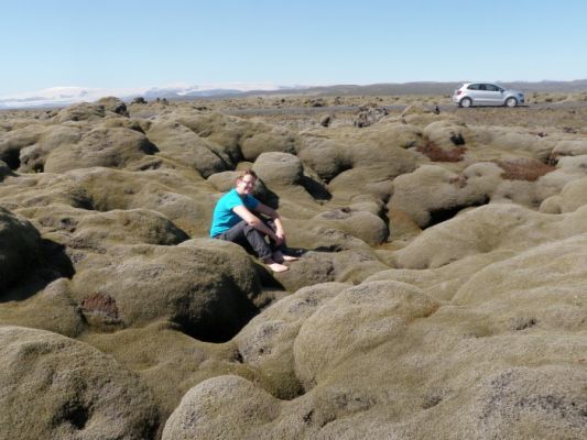 Ein kurzer Stop in einem alten Lavafeld muss auch sein. Barfuss laufen wir über dickes Moospolster, die allerdings ziemlich "stauben" wie wir feststellen.