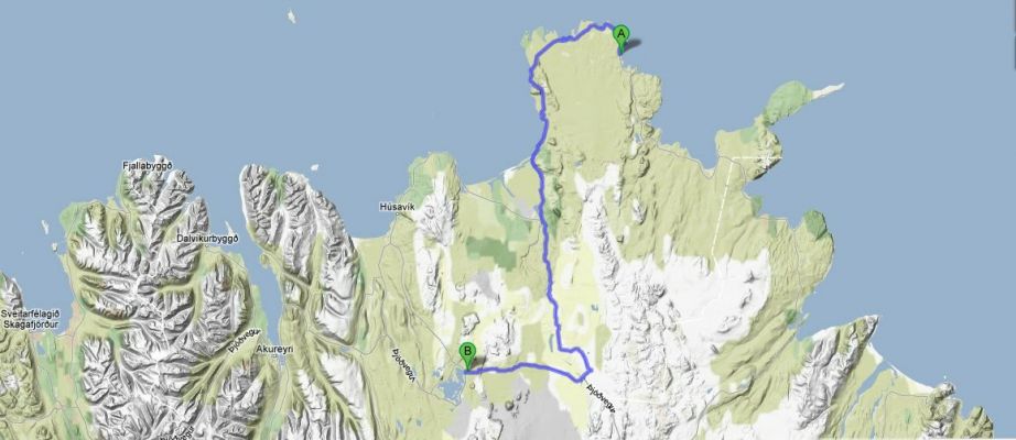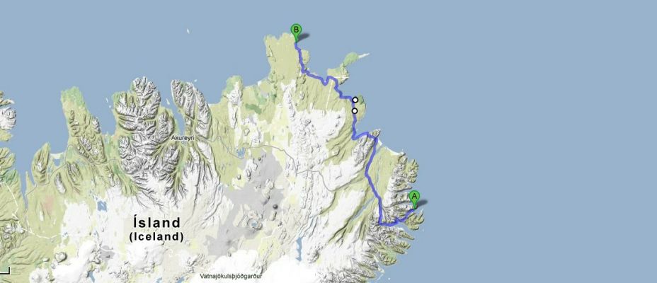 Tja Google-Maps ist mit Island an seine Grenzen gestoßen. Ich konnte einige Straßen bei normale Kartenansicht nicht wiederfinden  :zuck:   mit Satellit konnte man dann doch noch einige ausmachen, allerdings gab der Routenplaner dann immer seinen Geist auf. Die Gegend ist auch nur sehr spärlich bewohnt, ab und an mal ein Gehöft, aber auch sehr viele verlassene Häuser.