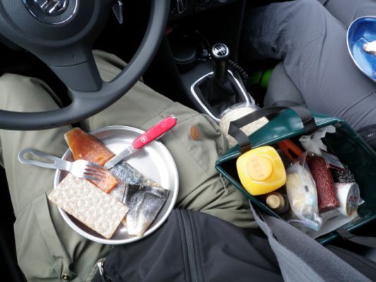 Direkt vorne am Abhang finden wir ein windgeschütztes Plätzchen und machen ausgiebig Mittagspause.