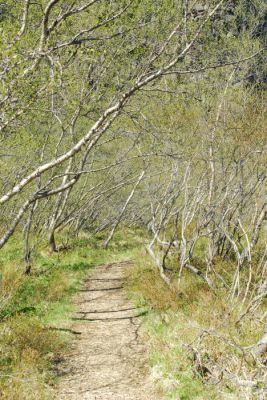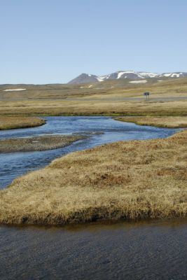 Ab und an verlässt die Straße die Küste und schraubt sich ins Fjäll mit einsamen Mooren und Tümpeln, bevölkert nur von Singschwänen, Eiderenten und diversen anderen Vögeln. Wieder zieren Schneefelder die Landschaft und da Blau der Flüsse und See hebt sich kontrastreich vom Braun der Heide ab.