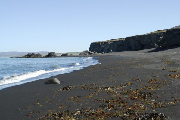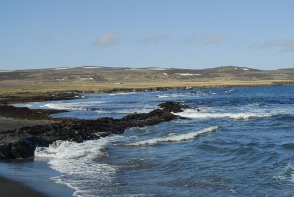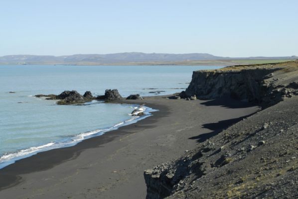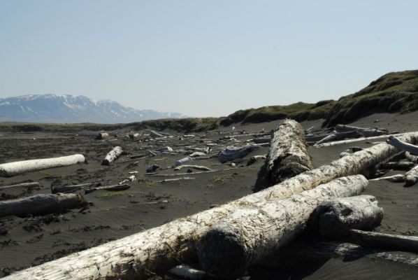 Die Küste ist von Treibholz übersät u, das oft weit ins Landesinnere gespült wurde. Die Sonne scheint und wir fahren auf überwiegend Schotterpiste entlang der Melrakkasleta – der "Ebene der Polarfüchse".