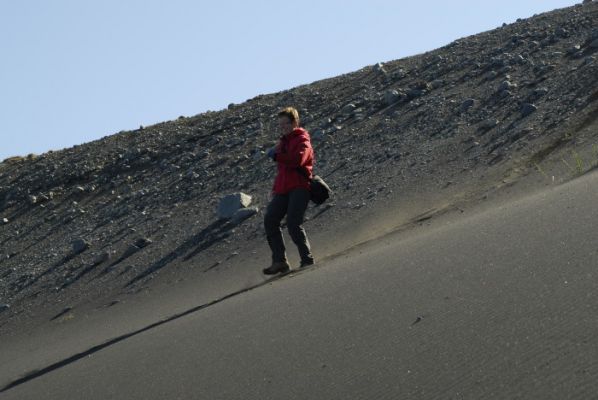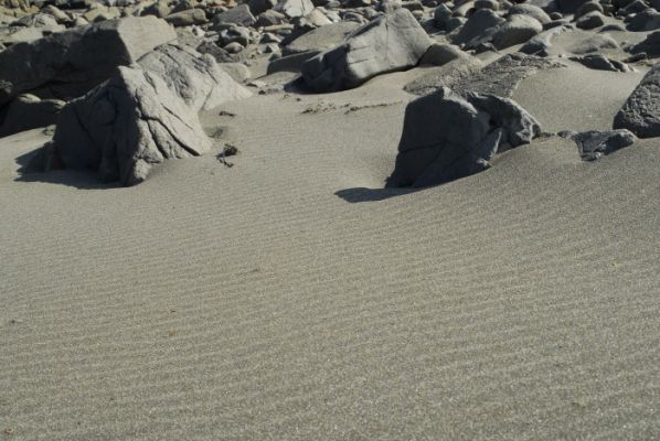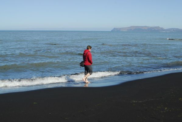 Jetzt schlendern wir über den dunklen Sandstrand......
