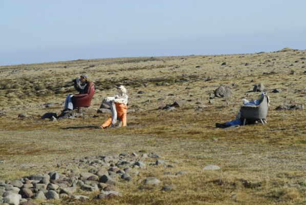 Abendessen und Notizen schreiben, während die Vögel kreischen und dabei in der Sonne sitzen. Auch heute haben wir wieder viele Schwäne gesehen und auch wieder Alpenschneehühner entdeckt.