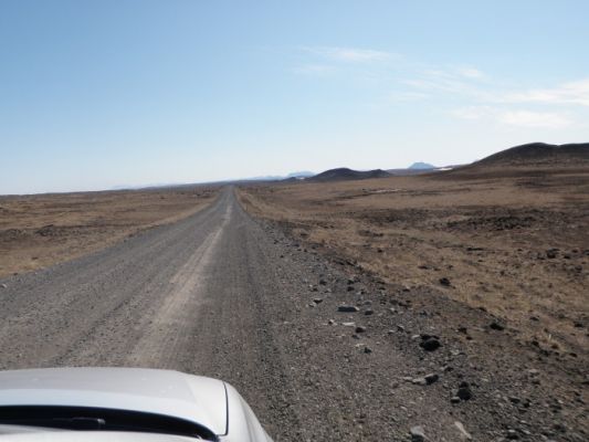 Zurück zum Auto und über den Jökulsa um auf der Ostseite zum Dettifoss zu gelangen. Kathrin müht sich die ersten 25 km Schotterpiste ab.....