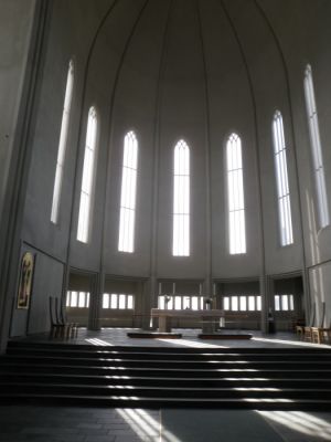 Innen ist die Kirche erstaunlich hell und hat eine gute Akkustik. Hinten steht eine Monsterorgel, das muss der Hammer sein, wenn die auf vollen Touren gespielt wird.