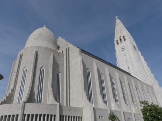 ..... und laufen hoch zur Halgrimskirka, die wuchtig von oben auf die Stadt sieht.