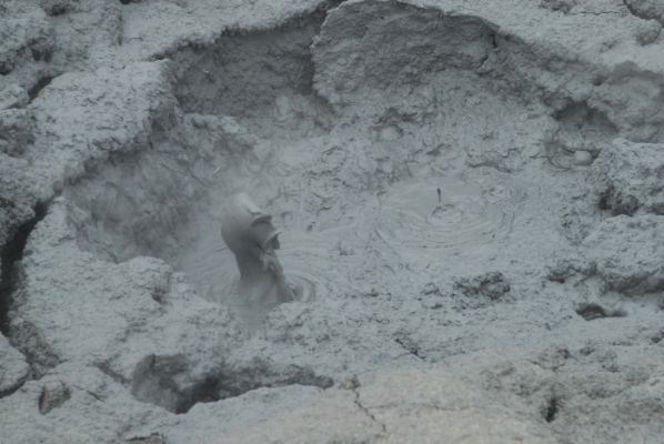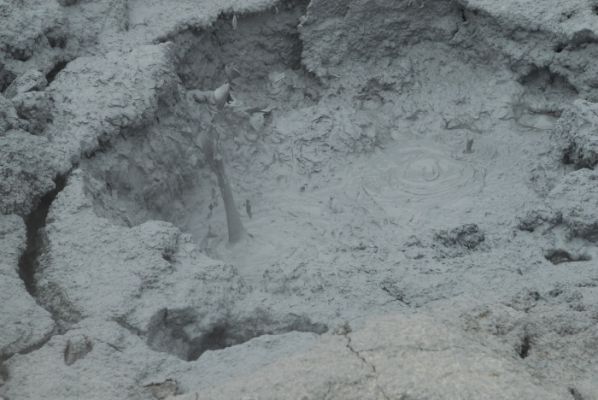 Wieder runter und den Rundgang beenden - und da - kurz vor Schluß werden wir endlich fündig. Kochender Schlamm. Wir freuen uns wie kleine Kinder