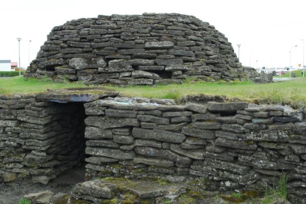 Hier gibt es etwas, das es in Island seit dem Jahr 1000 nicht mehr gegeben hat: einen heidnischen Tempel. Ein überzeugter Asenanhänger und Künstler hat ihn gebaut. Pflichtbewußt schauen wir uns (wenn auch nur kurz) den Sonnentempel an.