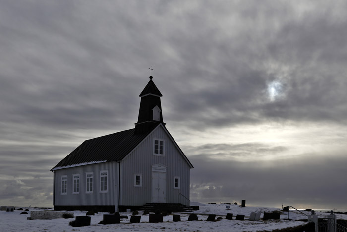 Ein Wegweiser zeigt als touristische Sehenswürdigkeit die Strandkirche. So richtig detailliert vorbereitet sind wir für diese Gegend nicht aber das hört sich interessant an. Und tatsächlich finden wir am Ende des Weges eine einsame, am Strand gelegene Kirche. Der daneben liegende Friedhof erzählt mit seinen Gräbern Geschichten über das harte Leben hier.