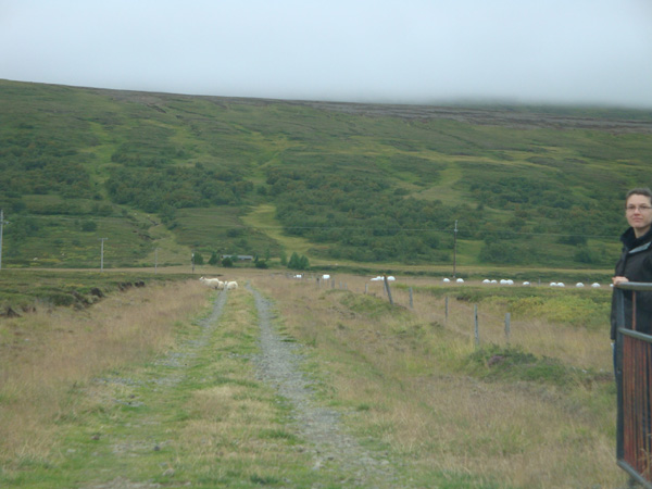 Für die 22 km zum Parkplatz benötigten wir 1 Stunde und 10 Minuten. Am Parkplatz angekommen hörten wir einen schreienden Mann. Hörte sich wie fluchen an. Er stürmte mit entsetztem Gesicht auf unser Auto zu. Er habe den Bus versäumt, mit seinem ganzen Gepäck und den Papieren. Er braucht Hilfe, er muss nach Myvatn. Ich sagte ihm, das Auto gegenüber scheint zu fahren er soll zuerst sie fragen, da wir gerade erst angekommen sind. Das waren Franzosen mit ihrem eigenen Auto, die aber alles voll geräumt hatten. Ein anderes Fahrzeug fuhr nicht nach Myvatn. Die Franzosen erbarmten sich seiner. Sie räumten den Kofferraum soweit frei, sodas er sich hineinlegen konnte. Die Schuhe musste er vorher ausziehen und in ein Plastiksackerl geben.